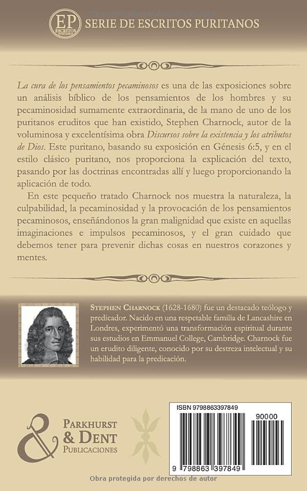 La cura de los pensamientos pecaminosos es una de las exposiciones sobre un análisis bíblico de los pensamientos de los hombres y su pecaminosidad sumamente extraordinaria, de la mano de uno de los puritanos eruditos que han existido, Stephen Charnock, autor de la voluminosa y excelentísima obra Discursos sobre la existencia y los atributos de Dios. Este puritano, basando su exposición en Génesis 6:5, y en el estilo clásico puritano, nos proporciona la explicación del texto, pasando por las doctrinas encontradas allí y luego proporcionando la aplicación de todo.