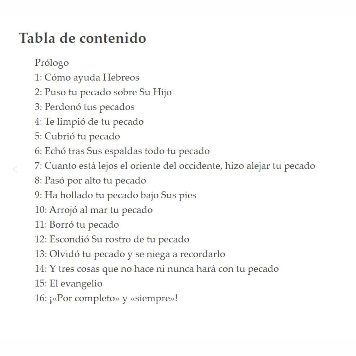 Storms aborda la ansiedad sobre el pecado y le recuerda a los creyentes las buenas noticias del evangelio. Comienza con una explicación de la gloria de la sustitución penal y camina a través de las 12 cosas que Dios hizo con su pecado, entre las cuales están: Lo perdonó, pasó sobre él y lo echó en las profundidades del mar. También explica tres cosas que Dios nunca hará con su pecado, como contarlo en su contra. Al explicar las enseñanzas de Dios, Storms ayuda a los creyentes a encontrar libertad, gozo y paz en saber lo que Dios ha hecho (y nunca hará) con su pecado a través del sacrificio redentor de Jesús.