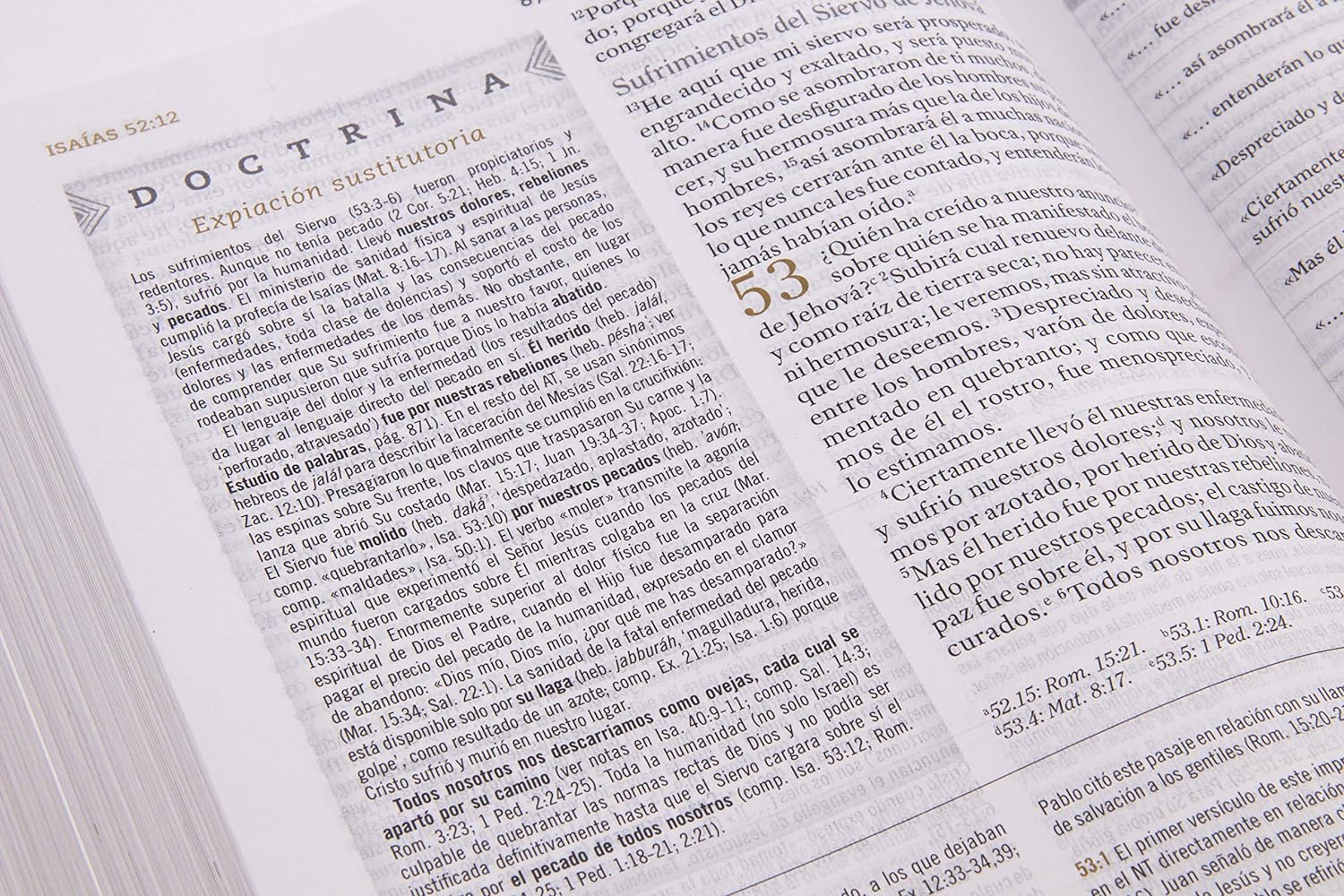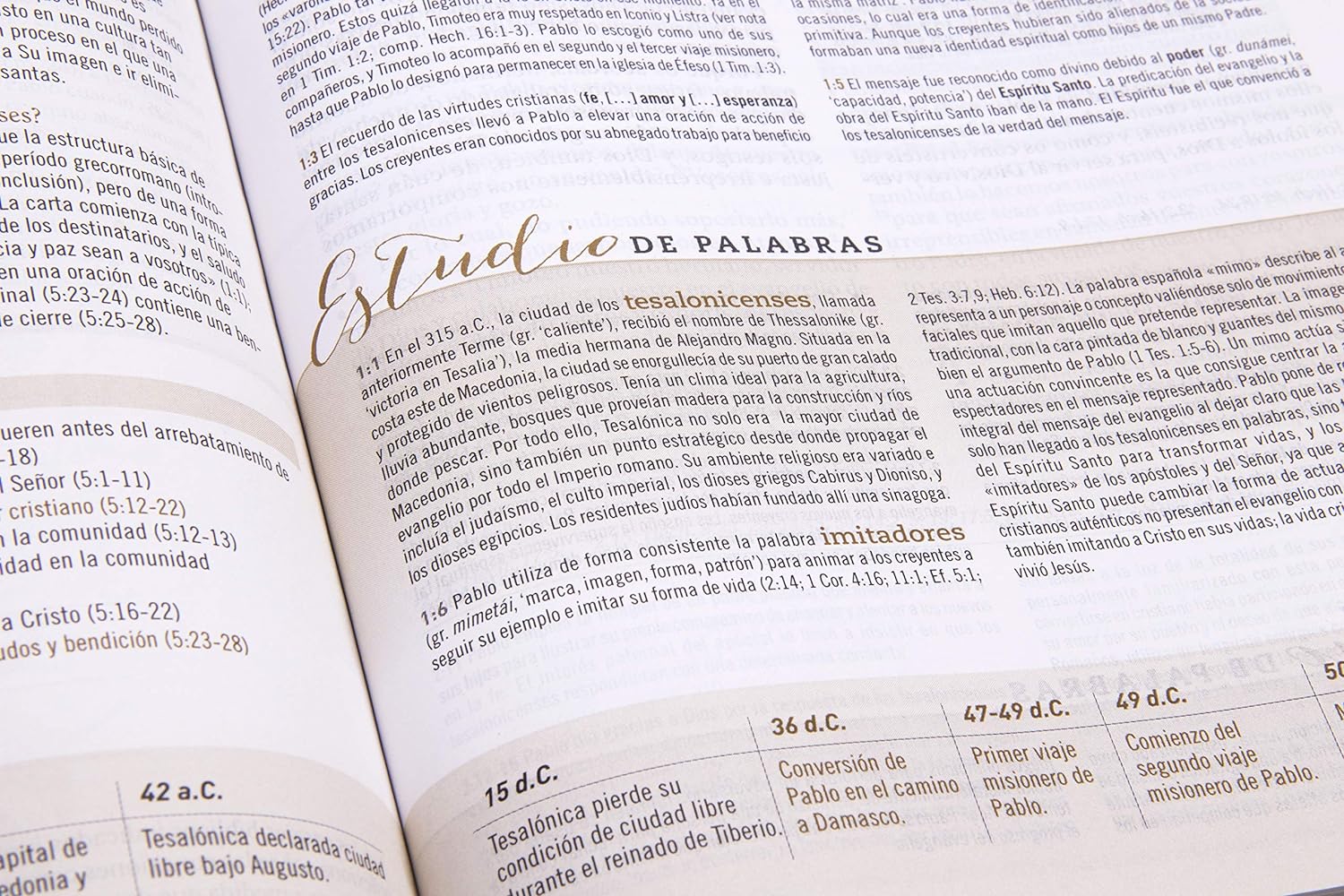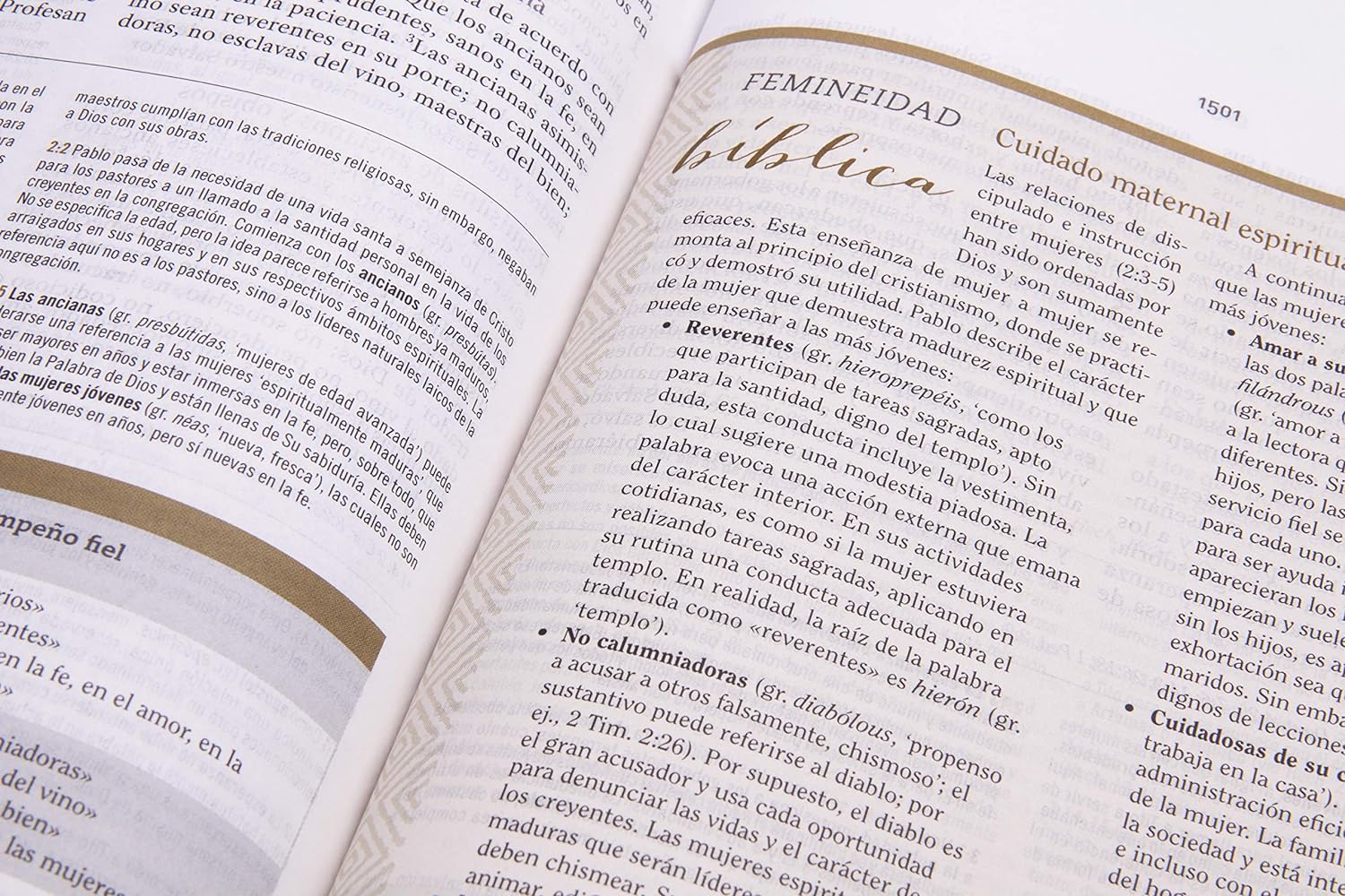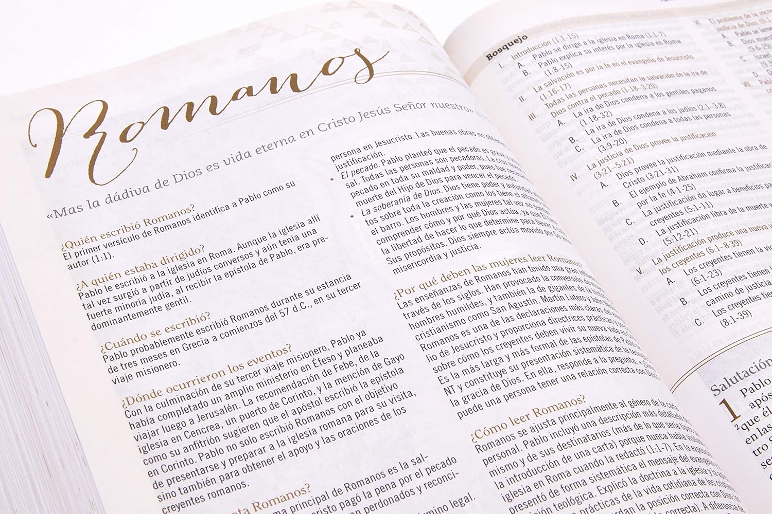 Biblia Reina Valera 1960 de Estudio para mujeres, te unirás a una multitud de mujeres académicamente preparadas en los idiomas originales de la Biblia y apasionadas por la Palabra de Dios. Con ellas te sumergirás de manera íntima y profunda en la Escritura para recibir las herramientas que te ayuden a desentrañar las riquezas y la majestad de Su Palabra, y para encender la pasión para guiar a otros a tu alrededor a que hagan lo mismo.