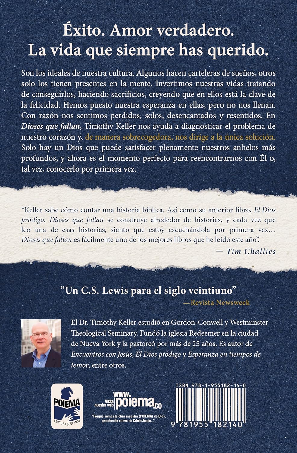 En Dioses que fallan, Timothy Keller nos ayuda a diagnosticar el problema de nuestro corazón y, de manera sobrecogedora, nos dirige a la única solución. Solo hay un Dios que puede satisfacer plenamente nuestros anhelos más profundos, y ahora es el momento perfecto para reencontrarnos con Él o, tal vez, para conocerlo por primera vez.