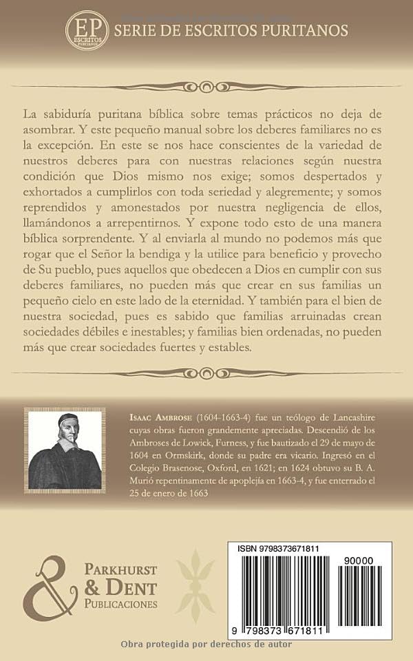 Y debido a todo esto anterior, este tipo de material sobre la familia se hace sumamente necesario. La sabiduría puritana bíblica sobre temas prácticos no deja de asombrar. Y este pequeño manual sobre los deberes familiares no es la excepción. En este se nos hace conscientes de la variedad de nuestros deberes para con nuestras relaciones según nuestra condición que Dios mismo nos exige; somos despertados y exhortados a cumplirlos con toda seriedad y alegremente; y somos reprendidos y amonestados por nuestra negligencia de ellos, llamándonos a arrepentirnos. Y expone todo esto de una manera bíblica sorprendente. Y al enviarla al mundo no podemos más que rogar que el Señor la bendiga y la utilice para beneficio y provecho de Su pueblo, pues aquellos que obedecen a Dios en cumplir con sus deberes familiares, no pueden más que crear en sus familias un pequeño cielo en este lado de la eternidad. Y también para el bien de nuestra sociedad, pues es sabido que familias arruinadas crean sociedades débiles e inestables; y familias bien ordenadas, no pueden más que crear sociedades fuertes y estables.