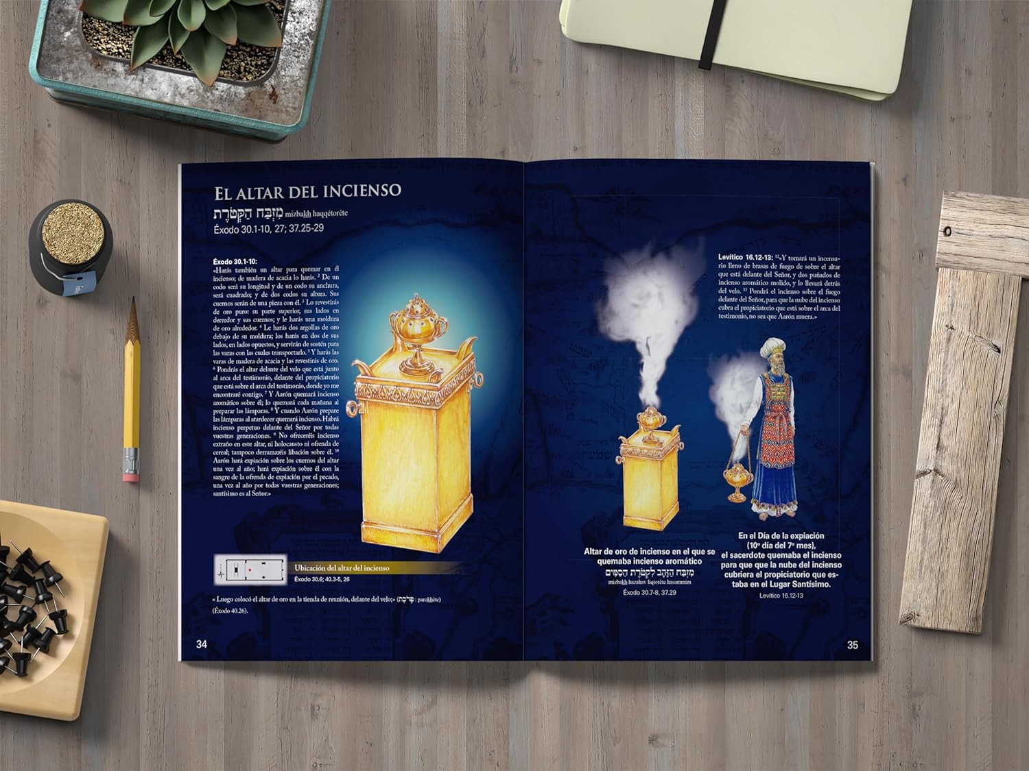 Este gran libro a color, único en su género, ofrece un descubrimiento muy detallado del tabernáculo, sus objetos y utensilios, acompañado de los pasajes bíblicos correspondientes.
