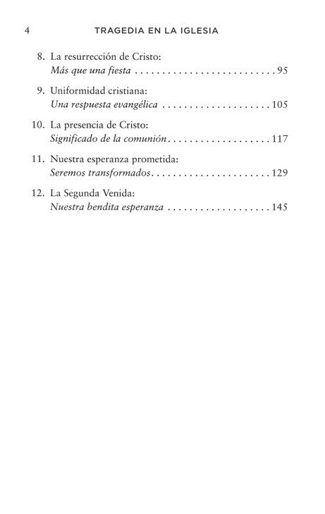 En su obra Tragedia en la iglesia, Tozer señala por qué tantos cristianos e iglesias en la actualidad muestran tanta debilidad. Pero no nos deja sin esperanza. Nos muestra el camino a seguir. Algunos de los temas expuestos en este libro incluyen los siguientes: